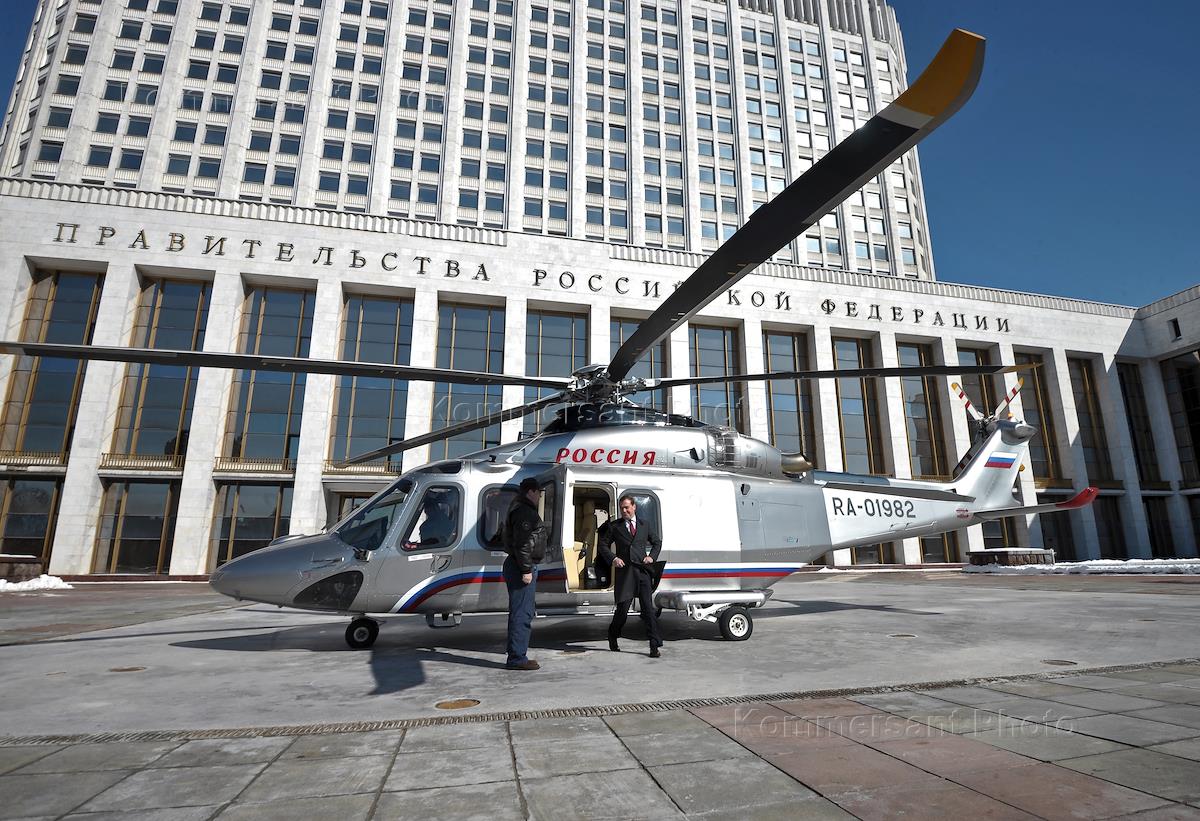 Вертолет председателя правительства России Дмитрия Медведева на вертолетной площадке перед Домом…
