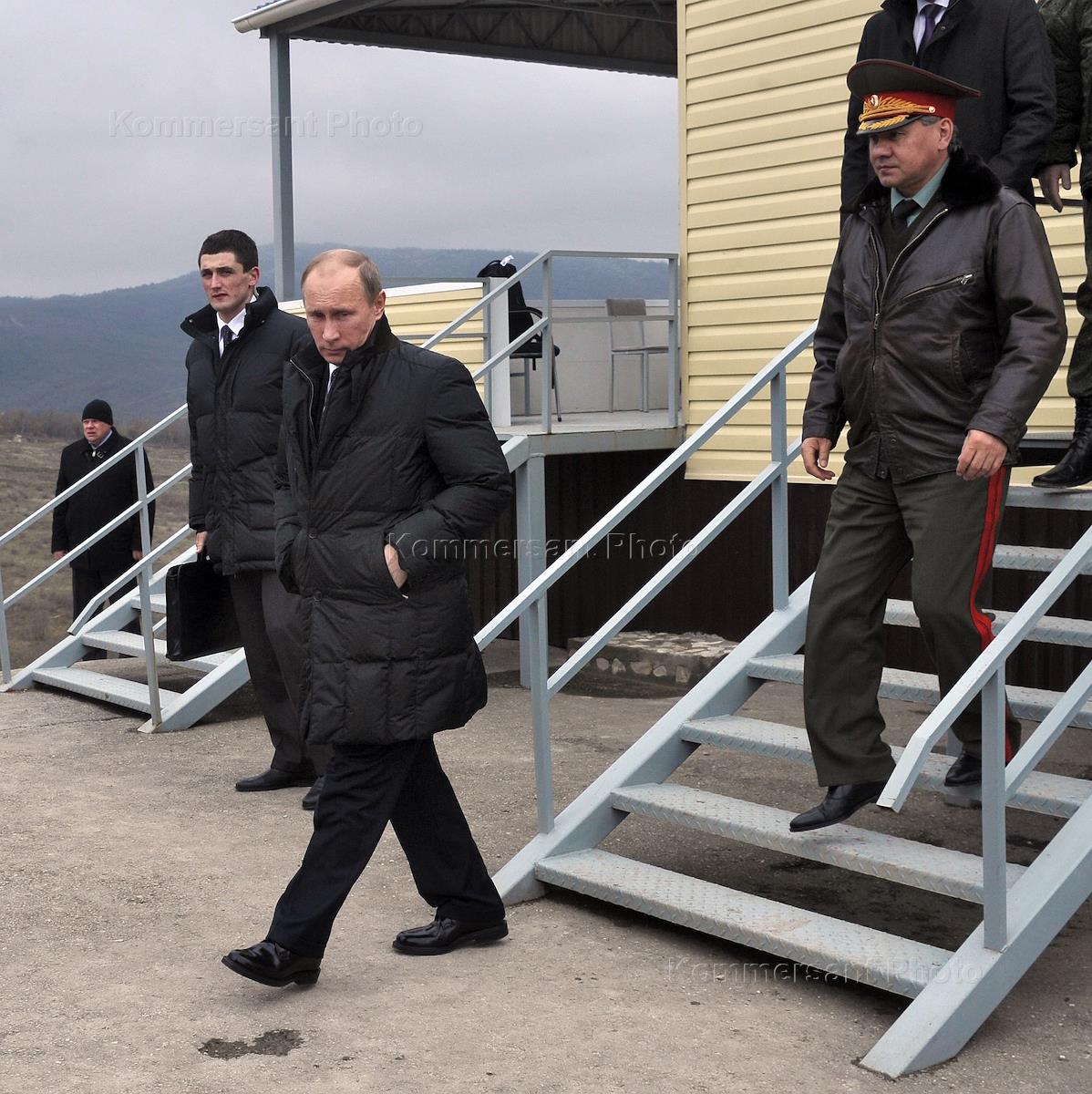 Президент России Владимир Путин (справа) и министр обороны России Сергей Шойгу (слева) во время…