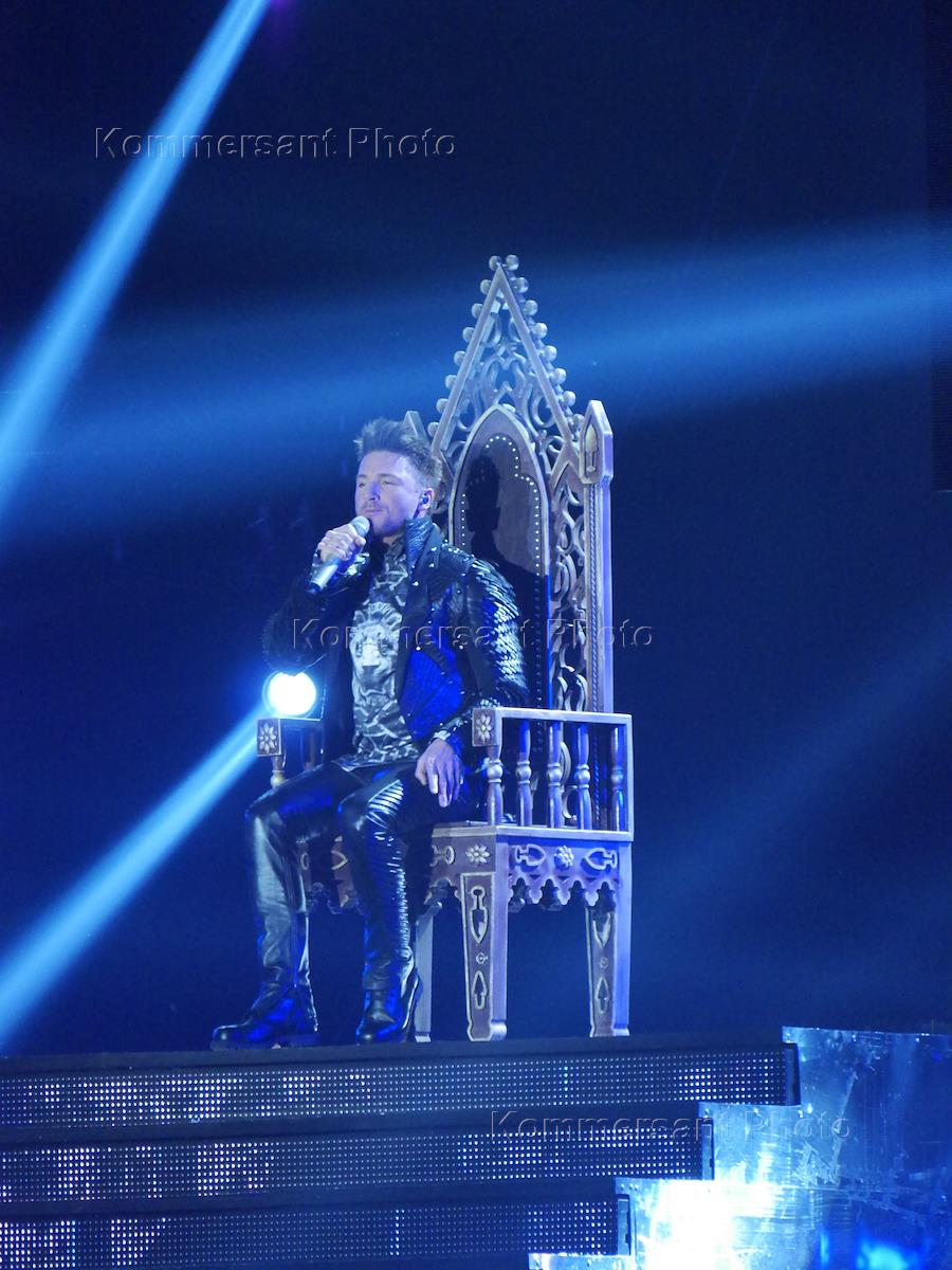 Певец Сергей Лазарев во время своего сольного концерта в спорткомплексе "Олимпийский".