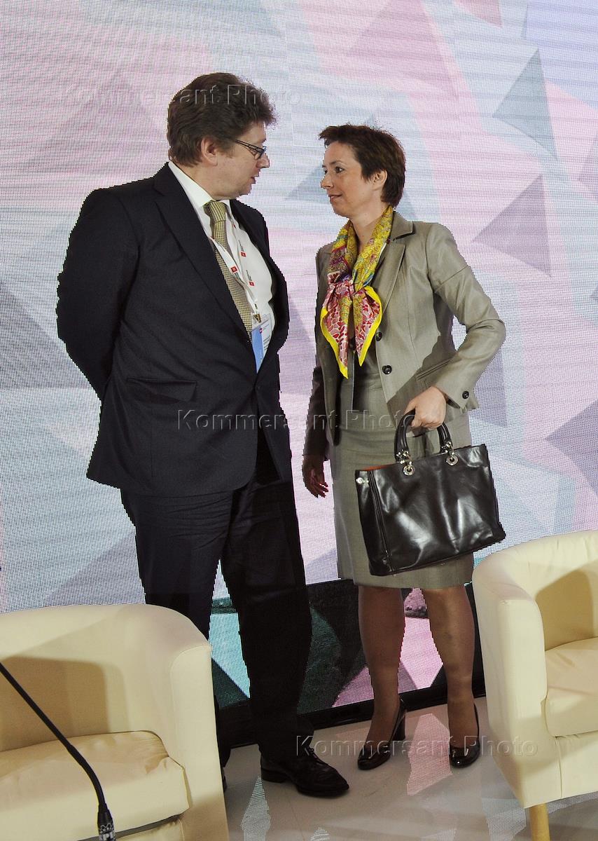Глава Федеральной службы России по финансовым рынками Дмитрий Панкин (слева) и заместитель…