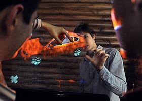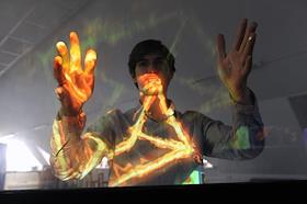 Демонстрация интерактивного безэкранного дисплея, который выводит в воздух любое изображение, в…