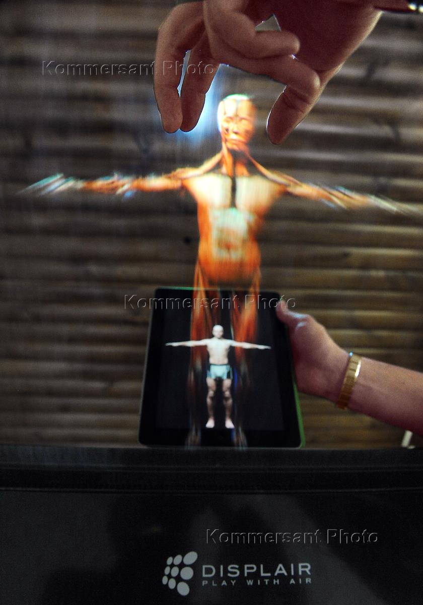 Демонстрация интерактивного безэкранного дисплея компании "Displair", который выводит в воздух любое…