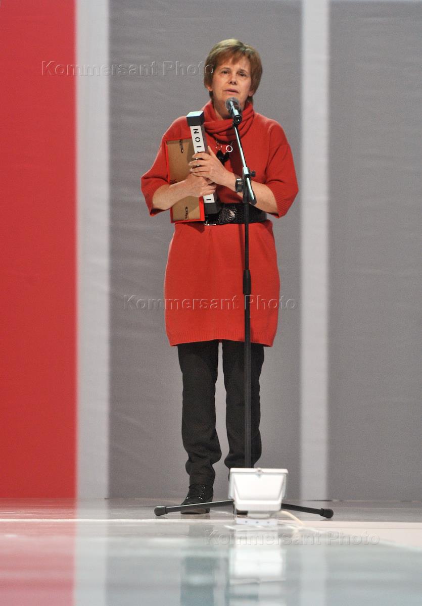 Художник Галина Мызникова во время церемонии награждения лауреатов конкурса в области современного…