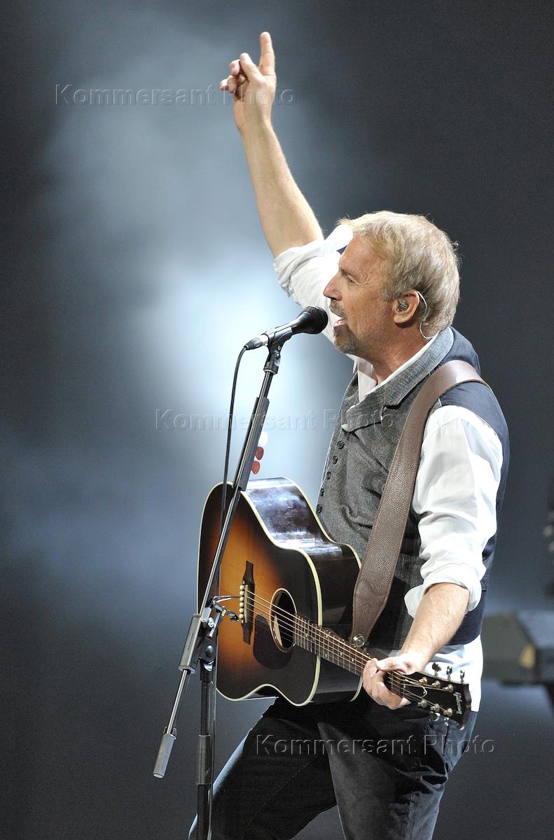 Американский актер и музыкант Кевин Костнер во время выступления на своем сольном концерте в …
