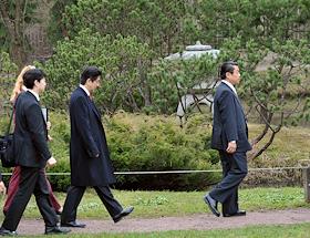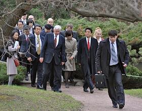 Премьер-министр Японии Синдзо Абэ (в центре) во время посещения Японский сад Главного ботанического…