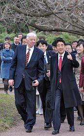 Премьер-министр Японии Синдзо Абэ (справа) во время посещения Японский сад Главного ботанического…