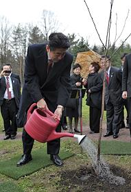 Премьер-министр Японии Синдзо Абэ посещает Японский сад Главного ботанического сада имени Н.В.Цицина РАН.