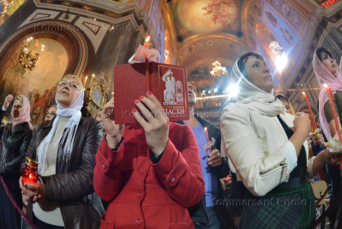 Крестный ход, пасхальная заутреня и Божественная литургия в день праздника Пасхи в Храме Христа Спасителя.