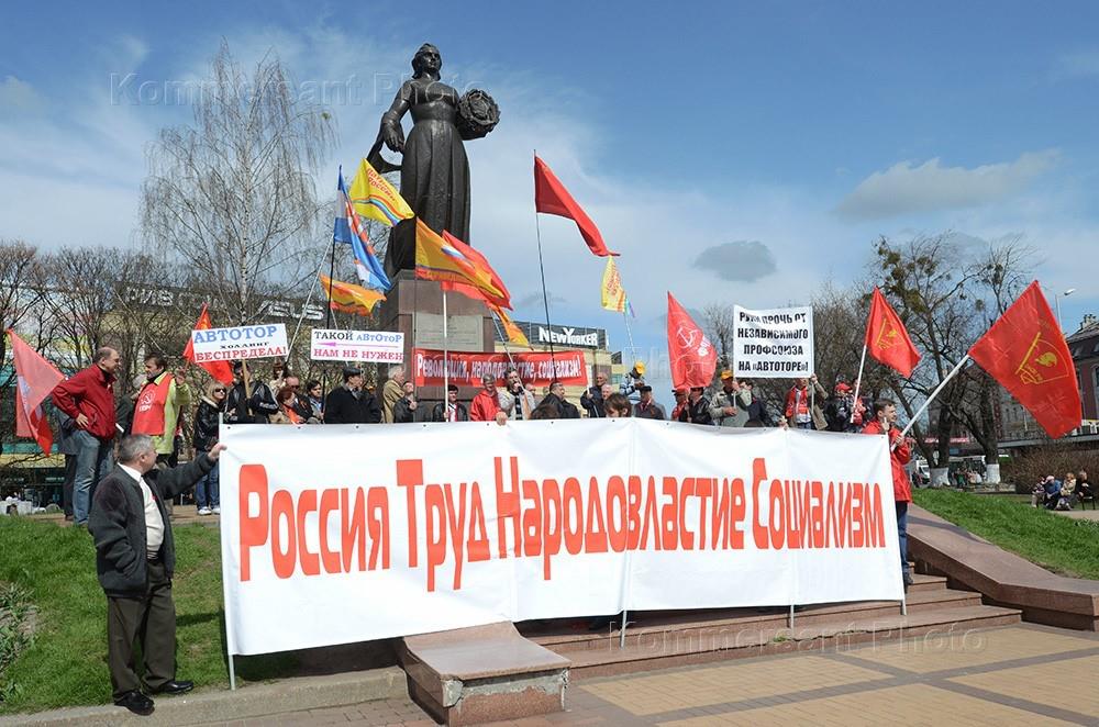 Первомайское шествие по Ленинскому проспекту от гостиницы "Калининград". Праздничные митинги в сквере Матери России.