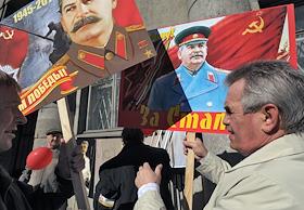 Участники Первомайской демонстрации на Невском проспекте. Портрет Иосифа Сталина.