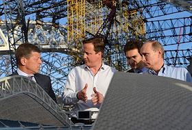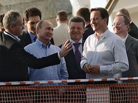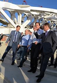 Политика Встреча президента России Владимира Путина с премьер-министром Великобритании Дэвидом Кэмероном в государственной резиденции "Бочаров ручей". посетили центральный олимпийский стадион «Фишт», который проектировался и строится с участием британских компаний.