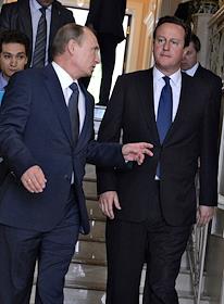 Президент России Владимир Путин (слева) и премьер-министр Великобритании Дэвид Кэмерон (справа) во…