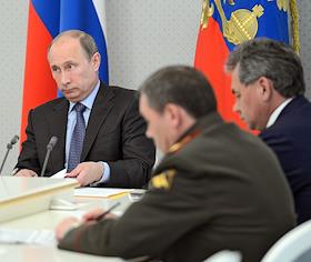 Президент России Владимир Путин на совещании с руководством Министерства обороны и аппарата Совета Безопасности.
