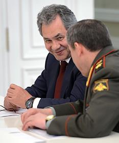 Министр обороны России Сергей Шойгу (слева) и первый заместитель министра обороны России Валерий…