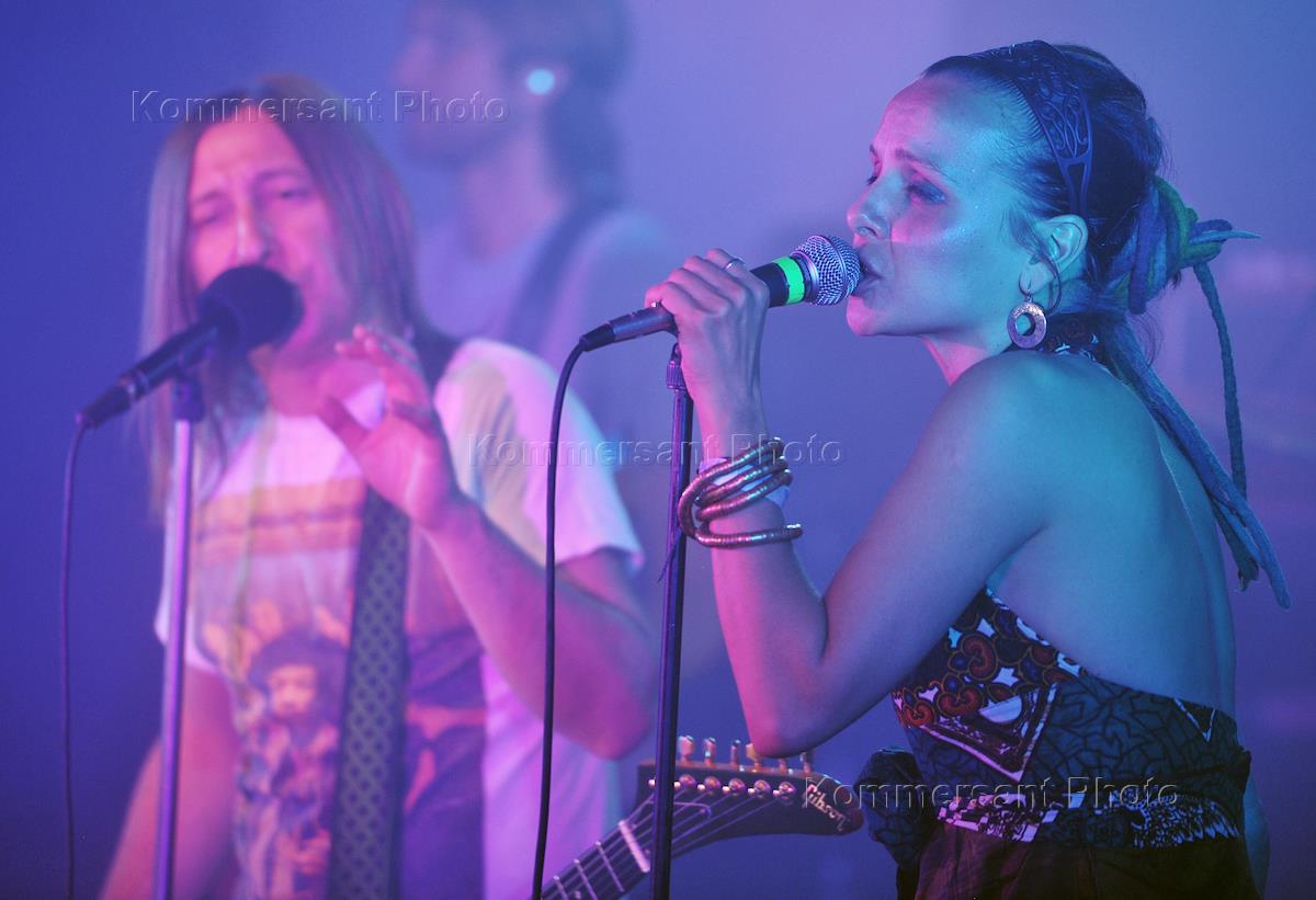 Солистка группы "Маша и медведи" Маша Макарова (справа) на презентации альбома группы Би-2"…