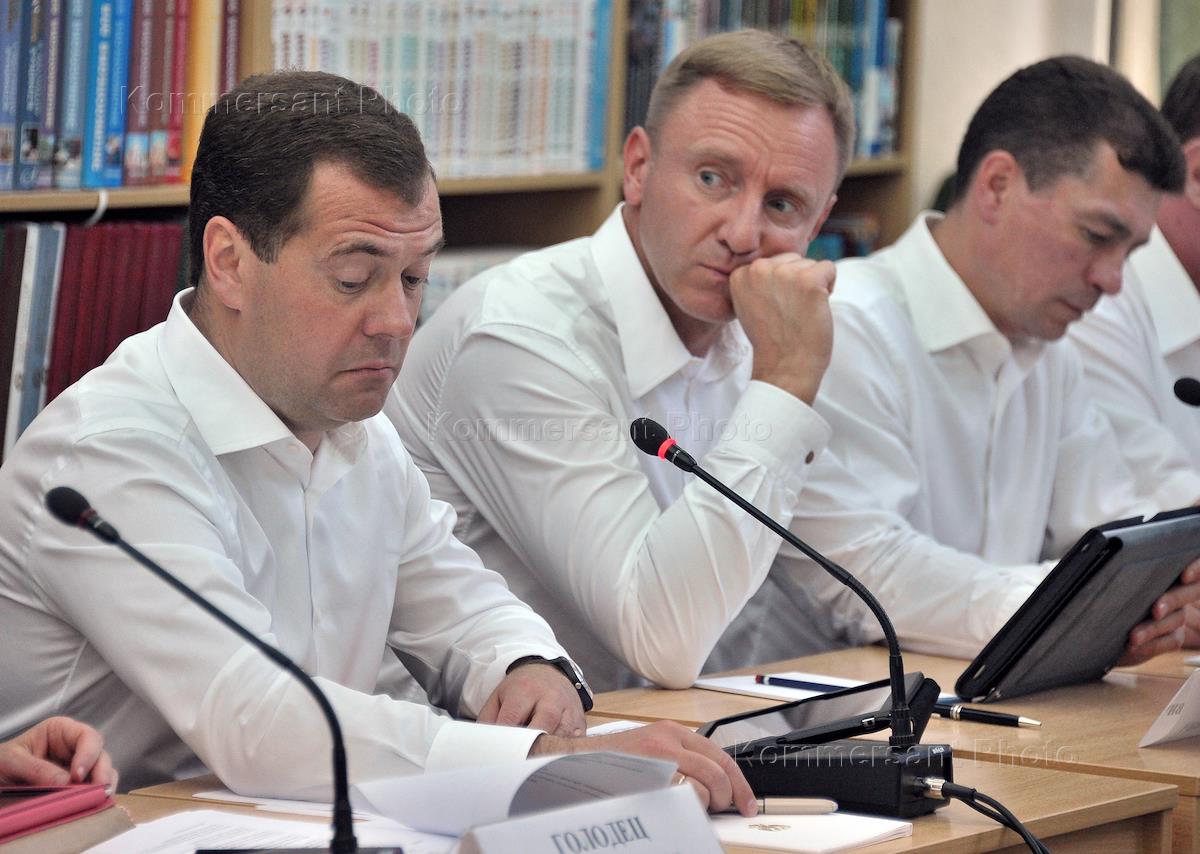 Слева направо: председатель правительства России Дмитрий Медведев, министр образования и науки…