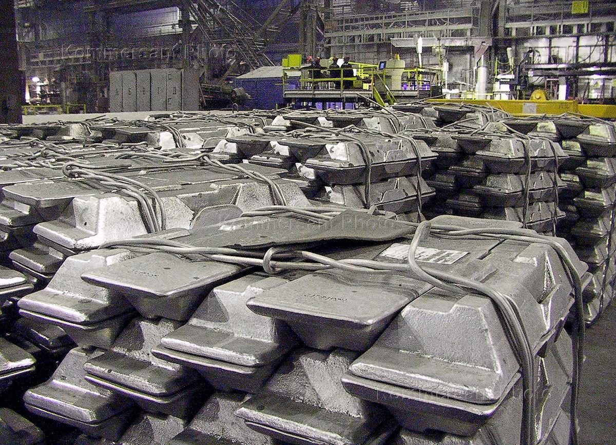 Саяногорский алюминиевый завод (САЗ). Склад готовой продукции, слитки алюминия, алюминиевые чушки.