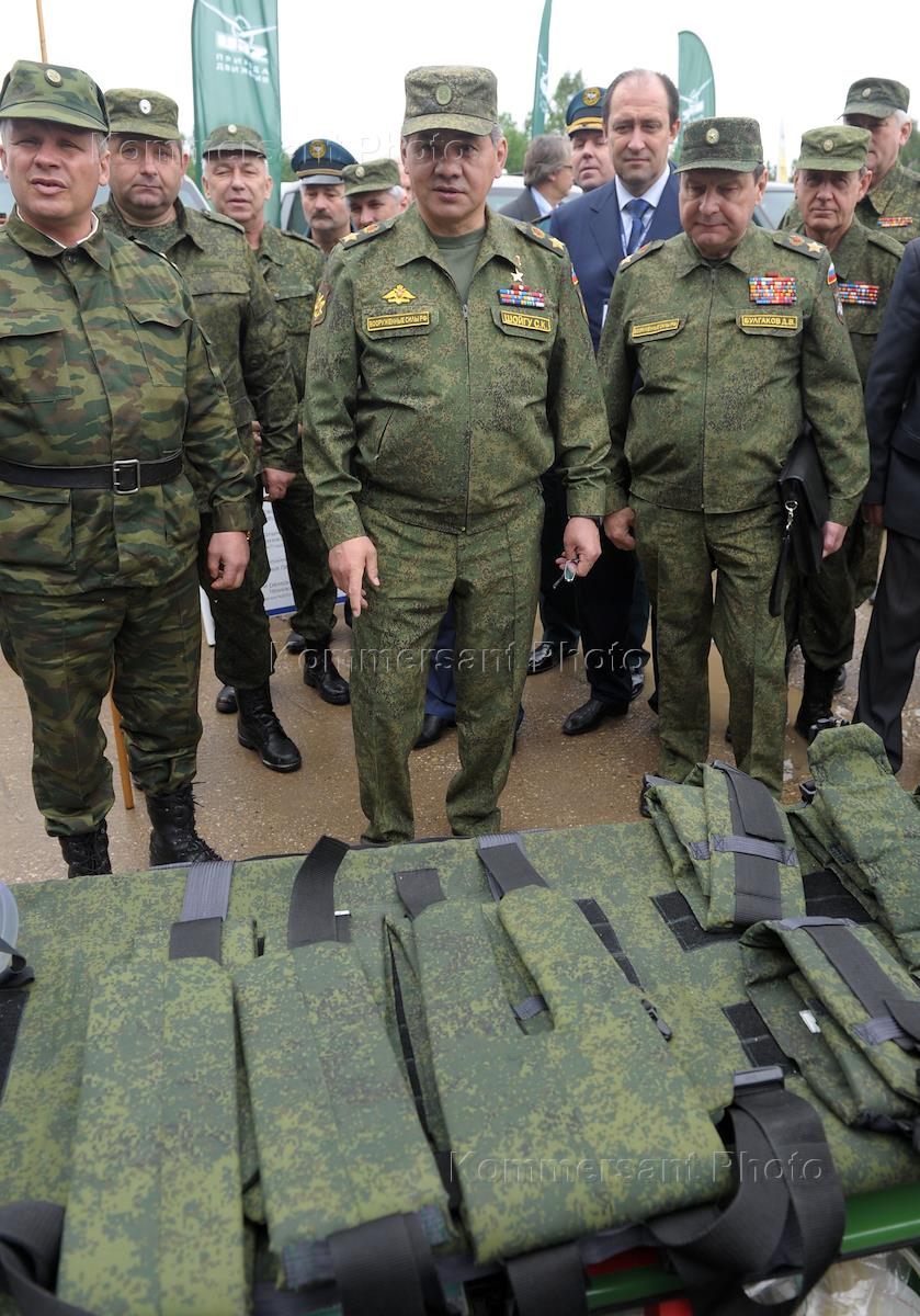 Министр обороны России Сергей Шойгу (в центре) на выставке военной техники, посвященной Дню военного…