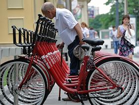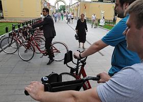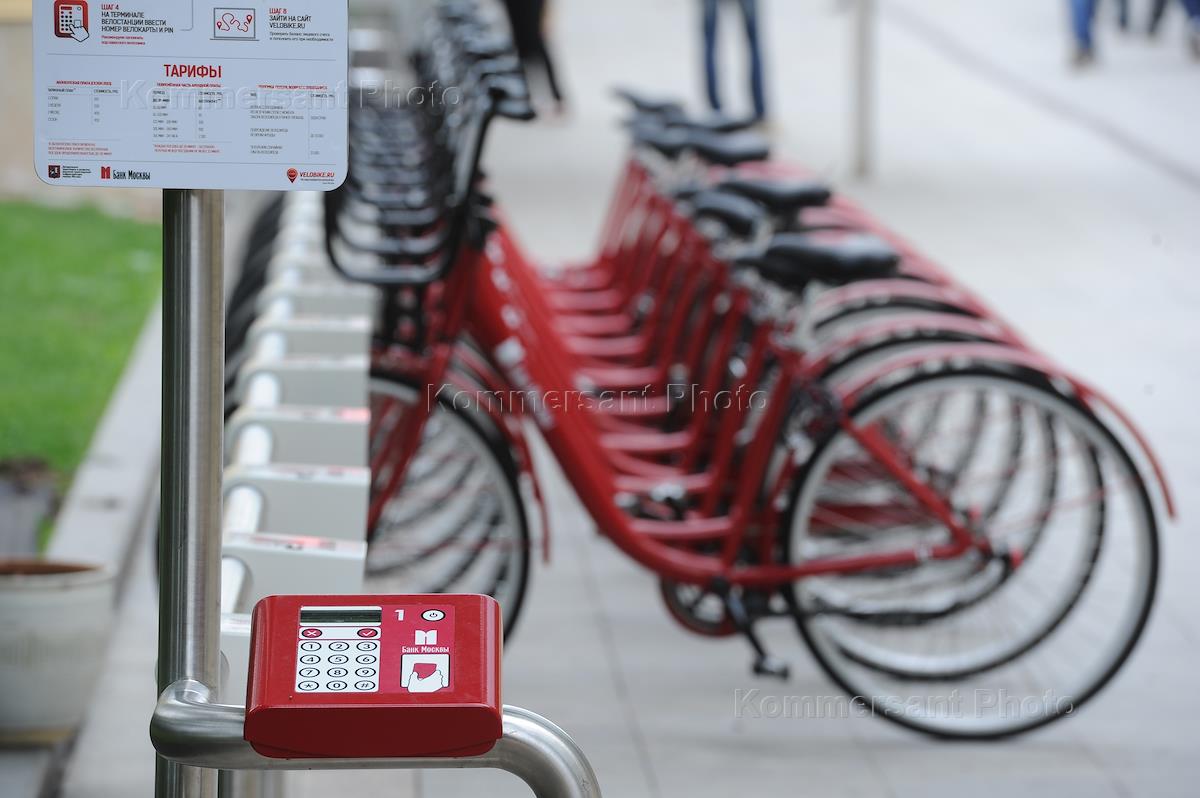 Станция проката велосипедов у станции метрополитена "Кропоткинская".