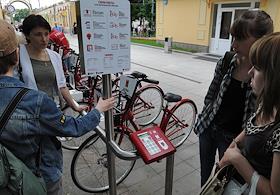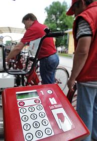 Станция проката велосипедов у станции метрополитена "Кропоткинская". Терминал оплаты проката.