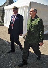 Слева направо: заместитель председателя правительства России Дмитрий Рогозин, председатель…