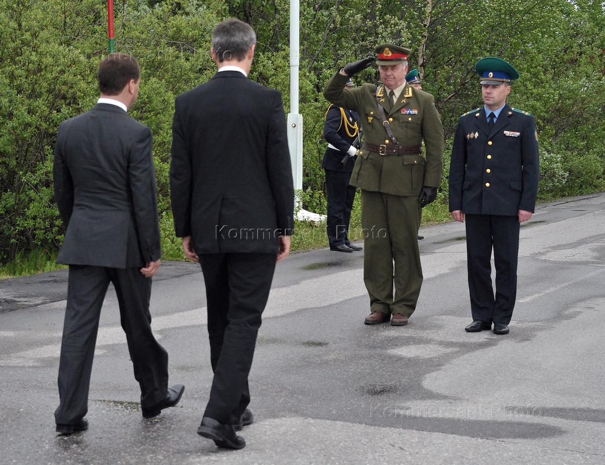 Председатель правительства России Дмитрий Медведев (слева) и премьер-министр Норвегии Йенс…