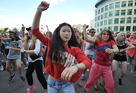Культура Флешмоб в рамках вручения "Премии МУЗ-ТВ 2013". Танец Gangnam Style в исполнении Южнокорейского рэпера PSY у центрального входа в СК "Олимпийский".