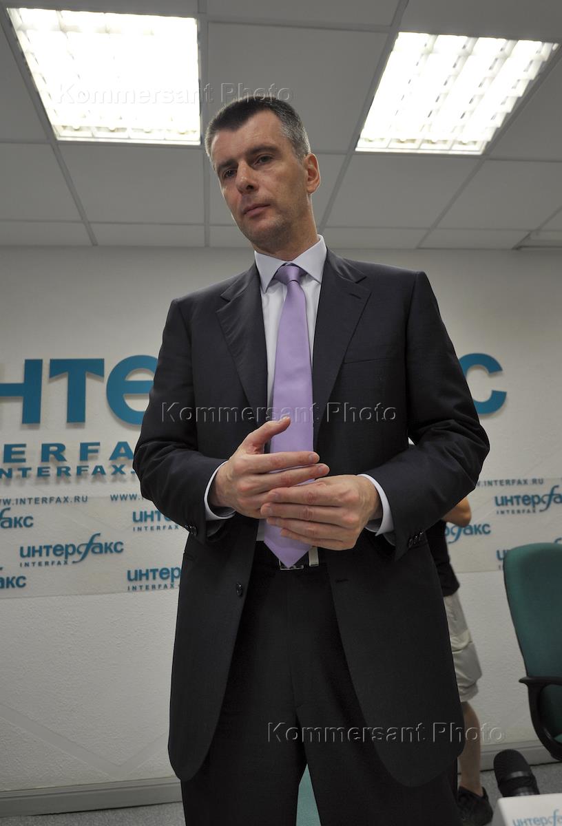Политика П/к лидера партии "Гражданская платформа" Михаила Прохорова в центральном офисе агентства "Интерфакс". Тема пресс-конференции: "Выдвижение кандидата от партии на пост мэра Москвы".