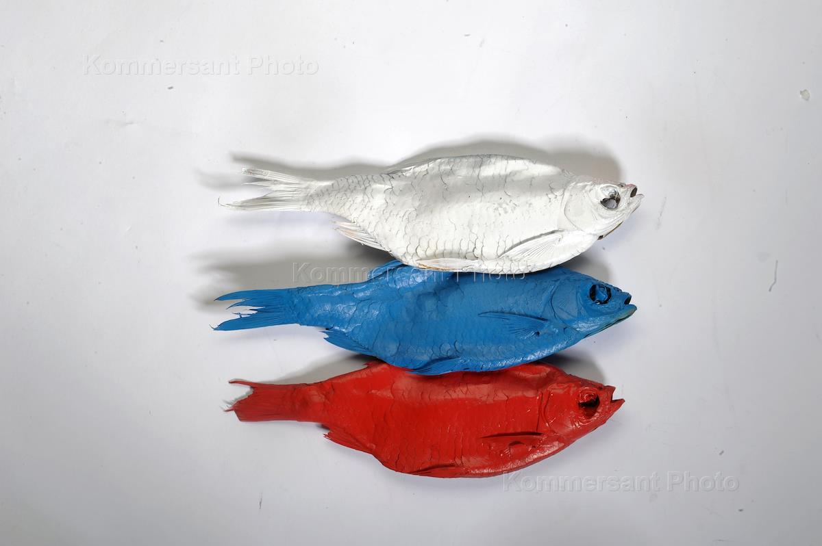 Обложка для журнала "Деньги". Рыба (вобла) окршенная в триколор