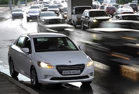 Специальный корреспондент издательского дома (ИД) "Коммерсантъ" Максим Кваша во время тест-драйва автомобиля Peugeot 301 (Пежо 301).