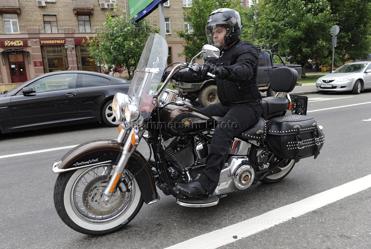 Обозреватель журнала "Деньги" Илья Зиновьев во время тест-драйва мотоцикла Harley Davidson (Харлей Дэвидсон).