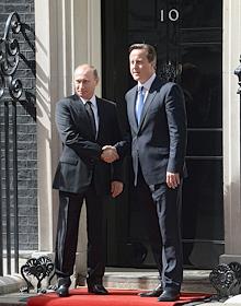 Президент России Владимир Путин (слева) и премьер-министр Великобритании Дэвид Кэмерон (справа) во…