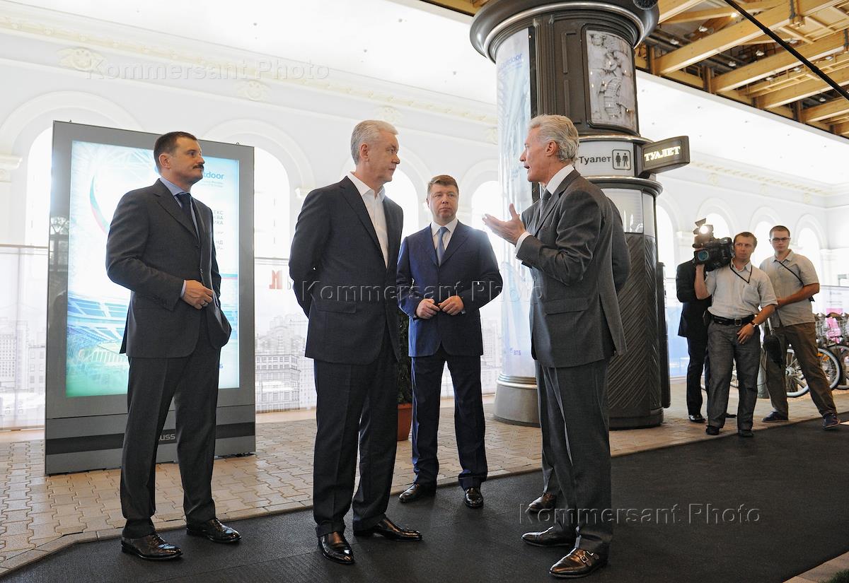 Исполняющий обязанности мэра Москвы Сергей Собянин (второй слева) и председатель правления рекламной…