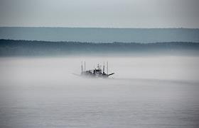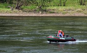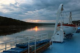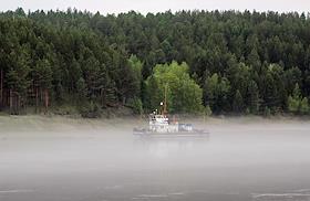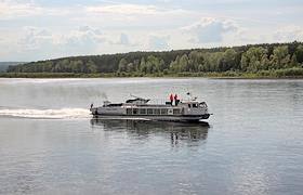 Скоростное пассажирское судно модели "Заря 346 Р" на реке Енисей.