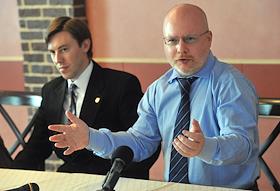 Заместитель главы Национально-демократической партии Андрей Кузнецов (слева) и председатель…