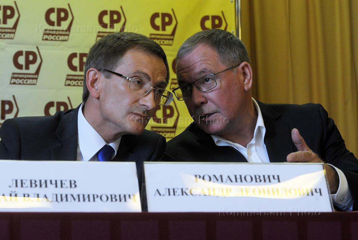 Председатель партии "Справедливая Россия" Николай Левичев (слева) и заместитель председателя…