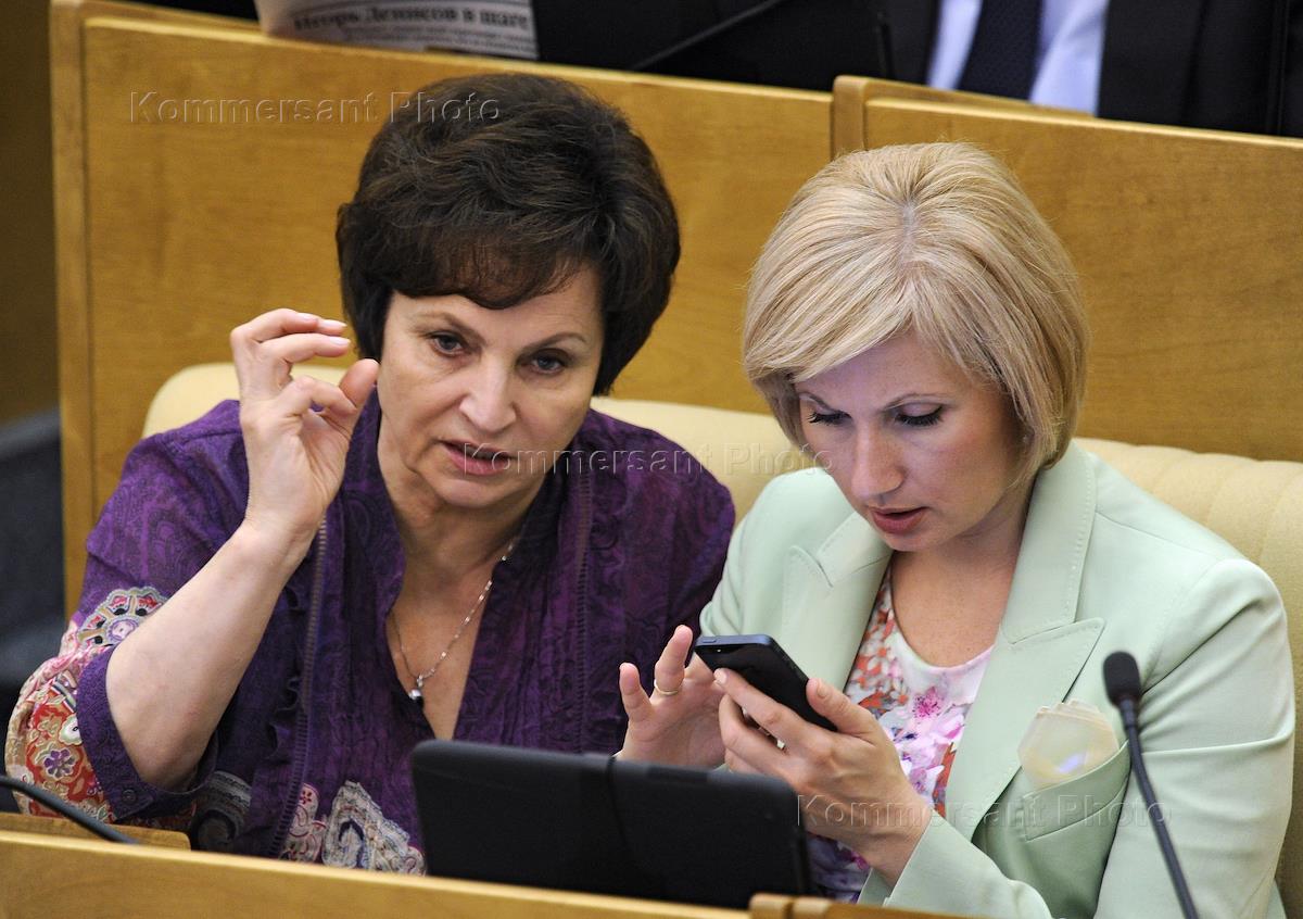 Член комитета Государственной думы (ГД) по культуре Мария Кожевникова (в центре) во время заседания…