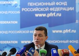 Министр труда и социальной защиты России Максим Топилин во время презентации Пенсионного…