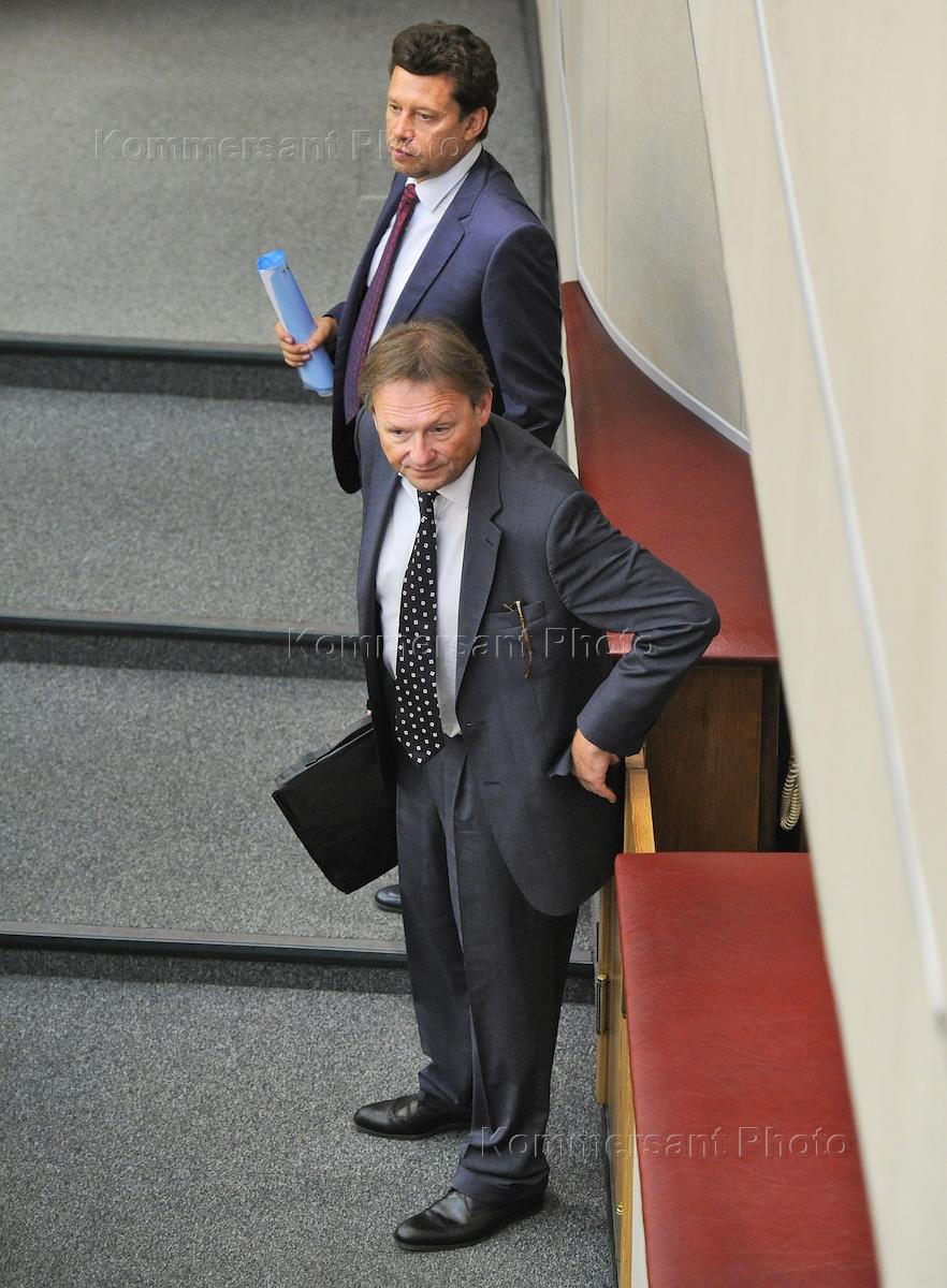 Член комитета Государственной думы (ГД) России по вопросам собственности Валерий Кравченко (слева) и…
