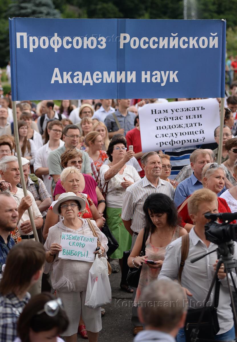 Участники митинга против реформы образования. Митинг прошел у старого здания президиума Российской…