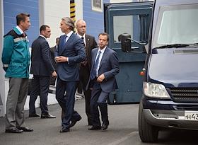 Политика Визит председателя правительства России Дмитрия Медведева в Уфу. Д.Медведев посетил предприятие ОАО "ПОЛИЭФ" компании "Сибур-ПЭТФ" в г.Благовещенске.
