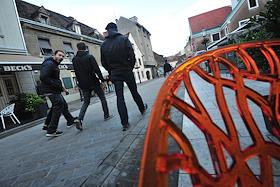 Виды Загреба. Пожилая женщина с тележкой поднимается по лестнице.