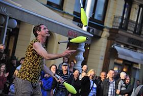 Пара в костюмах XIX века у киоска с мороженым в городе-курорте Опатия.