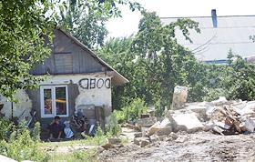 Старые, разрушенные дома в пострадавшем от наводнения в ночь на 7 июля 2012 года Крымске.