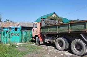 Снос старого дома в пострадавшем от наводнения в ночь на 7 июля 2012 года Крымске.