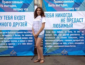 Участница акции "Православный F.A.Q.", организованной движением "Православный корпус веры",…