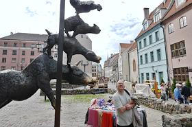 Виды Риги. Скульптура "Бременские музыканты".