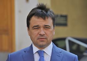 Временно исполняющий обязанности губернатора Московской области Андрей Воробьёв (слева) во время …