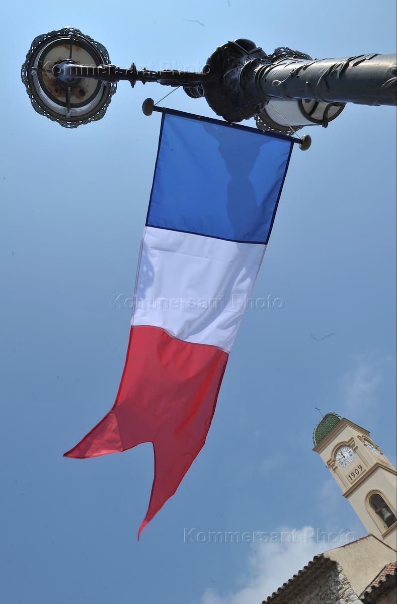 Жанровая фотография. Флаг Франции на фонарном столбу на Лазурном берегу.