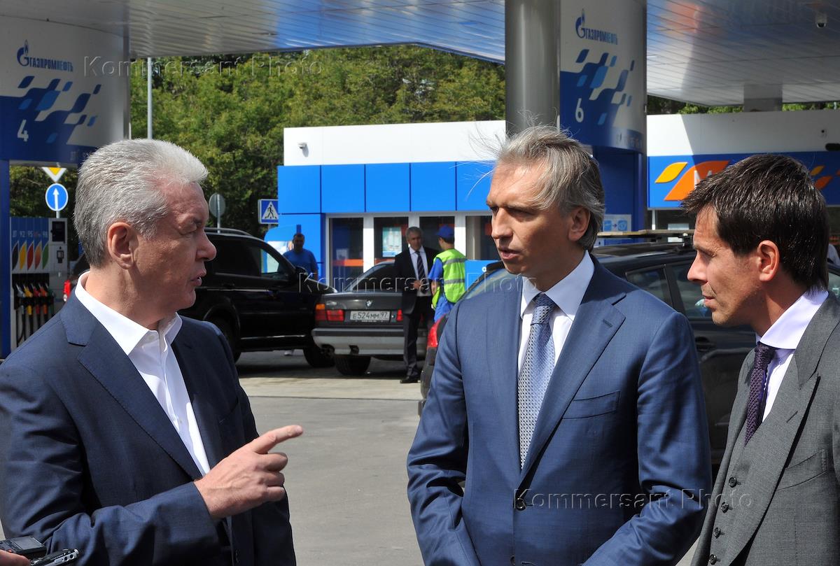 Исполняющий обязанности мэра Москвы Сергей Собянин (второй слева), генеральный директор ОАО "Газпром…